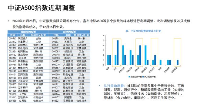 第一重催化剂是12月15日生效的中证A500指数样本股定期调整。此次调整涉及20只成份股的剔除和纳入。从历史角度看,被剔除股票过去收益普遍低于新纳入股票。从回测角度看,调样后,纳入股票未来表现普遍好于调出普票。对指数来说是一次优化升级。