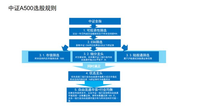 中证A500在每个行业中选取市值较大、流动性较好的证券作为样本,最终构成500只成份股的指数。