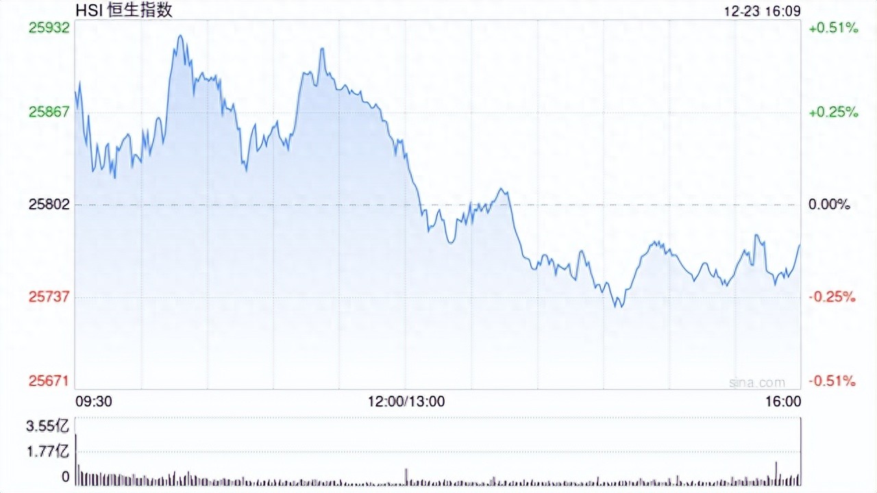 12月23日消息,港股三大指数高开低走。截至收盘,恒生指数跌0.11%,报25774.14点,恒生科技指数跌0.69%,国企指数跌0.29%。盘面上,科网股涨跌不一,联想涨近1%,快手跌超3%,腾讯超2%;风电股涨幅居前,东方电气涨超8%;生物技术股走低,药捷安康跌超18%;中资券商股高开低走,东方证券跌超1%;今日翰思艾泰、轻松健康、诺比侃上市。
