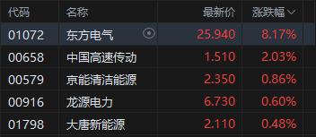 风电股涨幅居前,东方电气涨超8%。国信证券表示,展望2026年,国内风电新增装机有望保持10%-20%增长,订单饱和价格具有良好支撑。主机盈利逐季提高,出口放量提振业绩,国内外呈现景气共振态势。零部件在2026年有望实现“量增价稳”,长期成长性值得期待。在海风装机、招标同比显著增长背景下,海缆和管桩环节企业有望迎来订单和业绩共振。