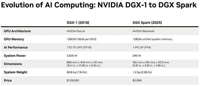 从2016年首台英伟达DGX-1超级计算机问世至今,短短9年,AI硬件发展突飞猛进,英伟达已经将当年需要机器集群提供的1PFLOPS算力塞进了桌面级设备里。