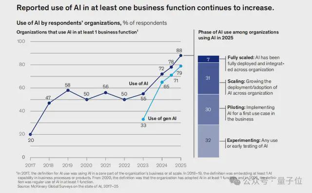 麦肯锡刚刚发布了2025年AI最新报告,一组数据让人“破防”: