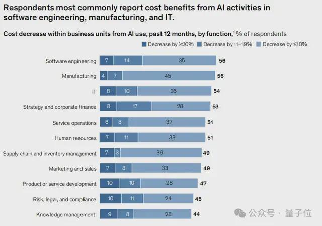 例如软件工程、制造、IT这类以效率提效为核心的岗位更容易吃到红利,而营销、战略、财务则是为数不多能带来“营收提升”的领域: