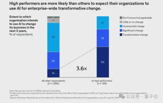 这些“高绩效组织”通常部署了比其他企业多两倍的AI用例,意味着他们往往是在关键任务场景里使用AI。