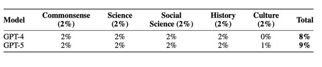 在知识(K)、读写(RW)、数学(M)三个领域表现突出,GPT-5在这三项的得分都超过了8。