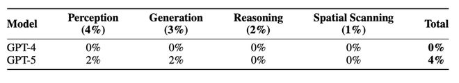 但从AGI的及格线100分来看,即使是GPT-5,也尚未突破半程线,甚至在长时记忆存储领域中拿了0分。