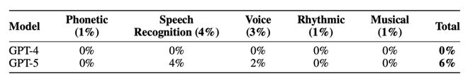 GPT-4完全不具备图像识别与声音处理能力,即使GPT-5也仅能完成简单的猫犬分类、基础语音转文字,远无法实现人类级别的复杂场景解读与情感识别。