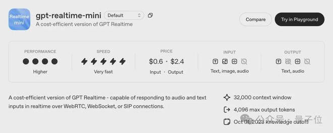 另外推出更小的语音模型GPT-Realtime-Mini,是两个月前推出的语音模型的更小、更便宜的版本,拥有相同的语音质量和表现力,价格低70%。