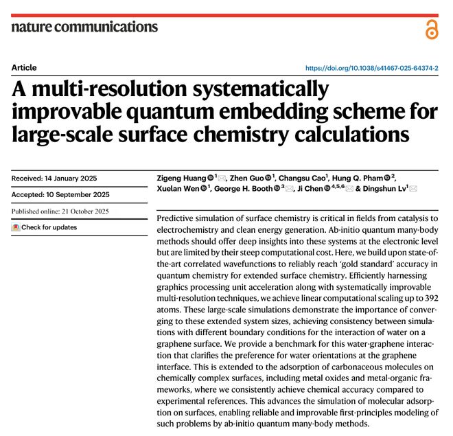 这意味着,科学家终于可以在计算机上,以实验级精度研究复杂的表面性质,从而为催化设计、清洁能源与新材料开发提供可信的理论基石。论文已于 2025 年 10 月 21 日发表在 Nature Communications,文章与代码均可被开放获取。