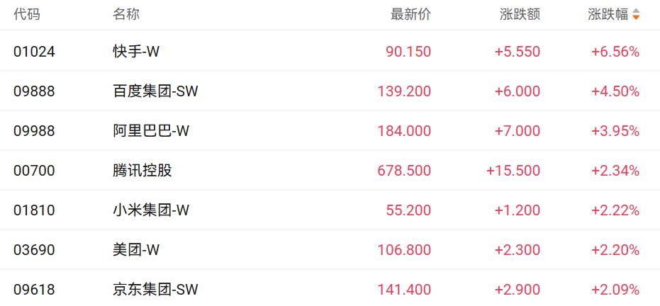 同样受AI提振还有科网股。截至午盘,快手-W(01024.HK)、百度集团-SW(09888.HK)、阿里巴巴-W(09988.HK)分别上涨6.56%、4.50%、3.95%。