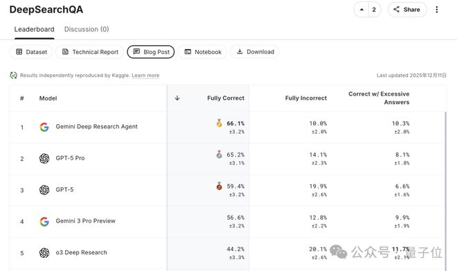谷歌还配套推出了DeepSearchQA基准测试集,为深度搜索与研究任务提供了更全面的评估标准。