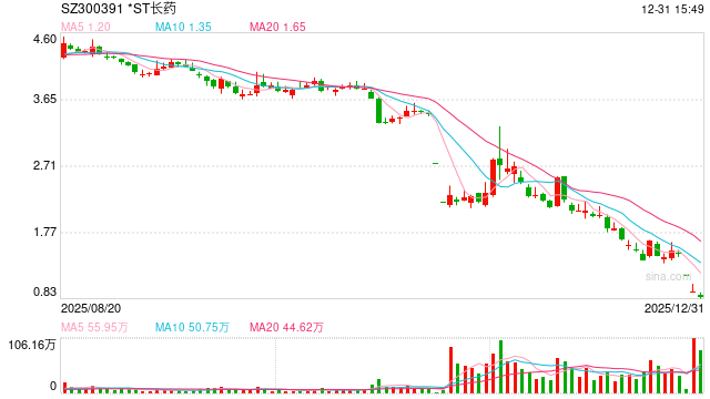 在相继披露了法院裁定不予受理重整申请暨子公司宣告破产、公司股票可能被实施重大违法强制退市相关风险、公司股票被叠加实施退市风险警示的公告后,*ST长药(维权)(300391)的股价在12月30日盘中一度跌停,当天收盘价报0.95元/股,下跌19.49%。