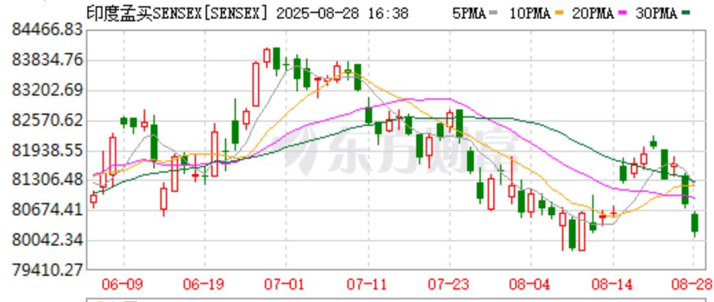 因为贸易大棒,印度股市是近期全球表现最差的市场之一。