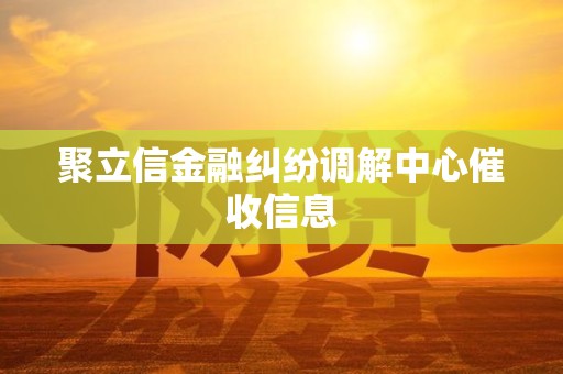 聚立信金融纠纷调解中心催收信息,帮你找回理性