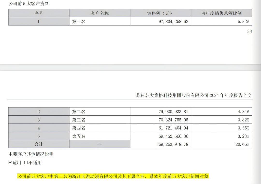 得益于卡游及潮玩类新产品开发和其他客户的顺利拓展,带动其新型3D印材和公共安全防伪材料事业群销售规模增长超1.5亿元,而作为第二大客户的“浙江卡游动漫有限公司及其下属企业”占其年度销售额的4%,贡献了近8000多万的销售额。
