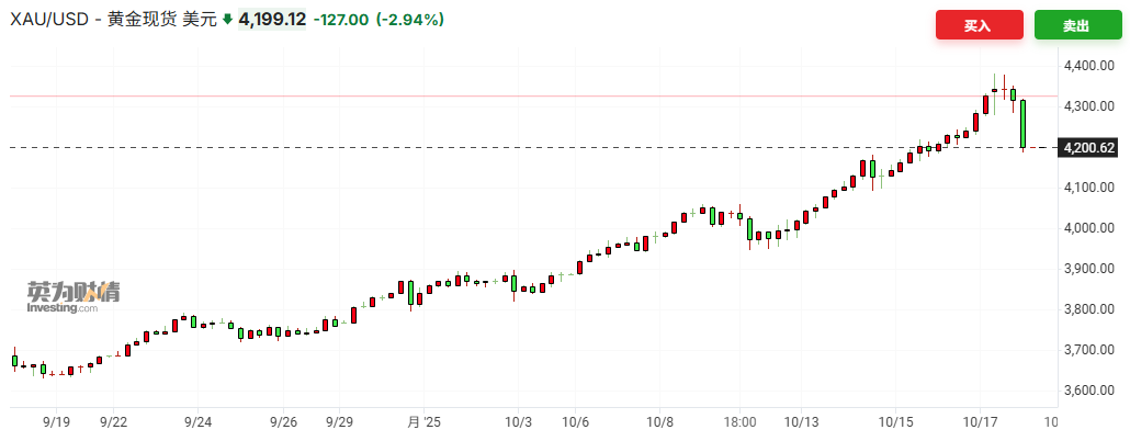 贸易担忧有所缓解,现货黄金跌破4200美元