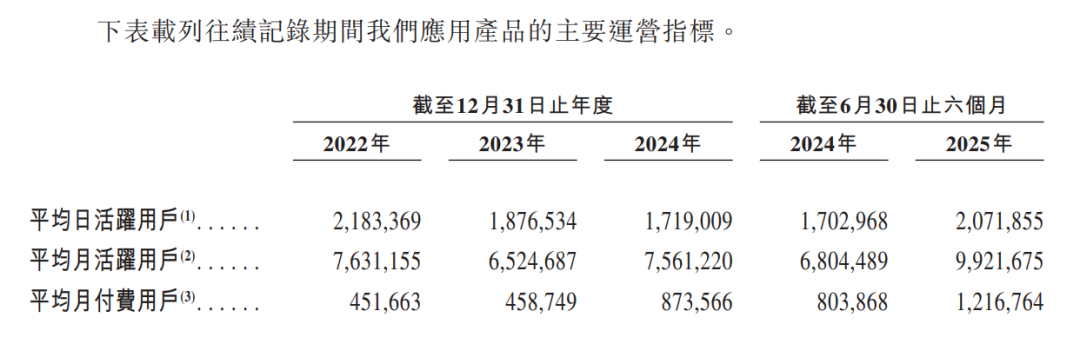 招股书显示,米连科技的收入几乎全部来自提供增值服务,包括虚拟物品、互动功能及会员订阅,用户则通过购买代币来支付上述服务内容。截至2025年前半年,公司平均月付费用户已经达到120万名。