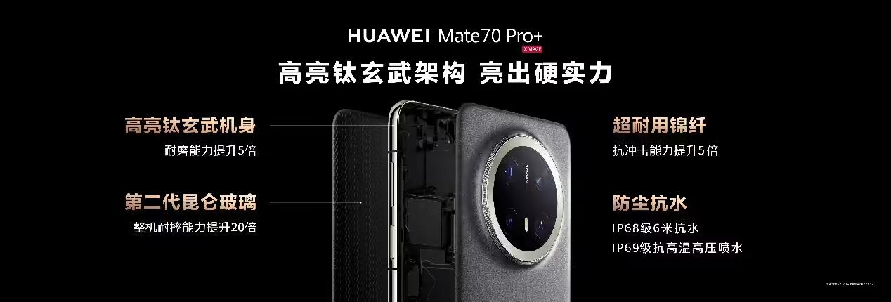华为 Mate 70 Pro + 创新性地采用了高亮钛玄武架构,为整机提供了全方位的周密防护。其正面屏幕搭载的第二代昆仑玻璃,抗摔性能得到进一步提升;中框则首次采用了兼具精致与坚固的高亮钛合金机身;机身背面则覆盖了超耐用的锦纤材料。这三重防护的结合,使得手机能够从容应对日常生活中的各种意外磕碰与跌落,为用户带来长久使用的安心感。