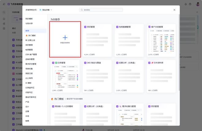 1. 在你的飞书云文档里,新建一个多维表格。