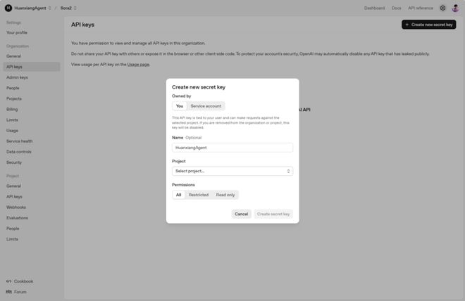 第三步:获取 Sora 2 官方 API 密钥