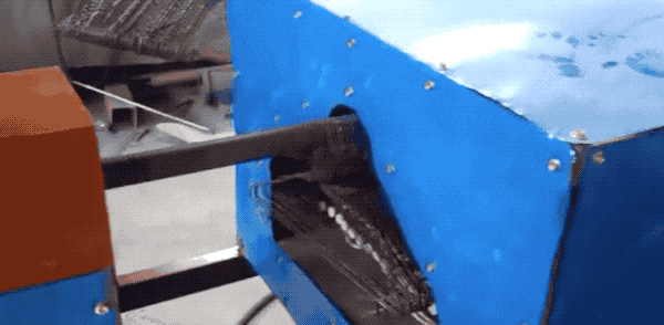 一根铁线在一体成型机中被快速的弯折、裁切、碰焊,出来的就是一个衣架胚子。下图衣架脖颈处闪火花,就是碰焊工艺。