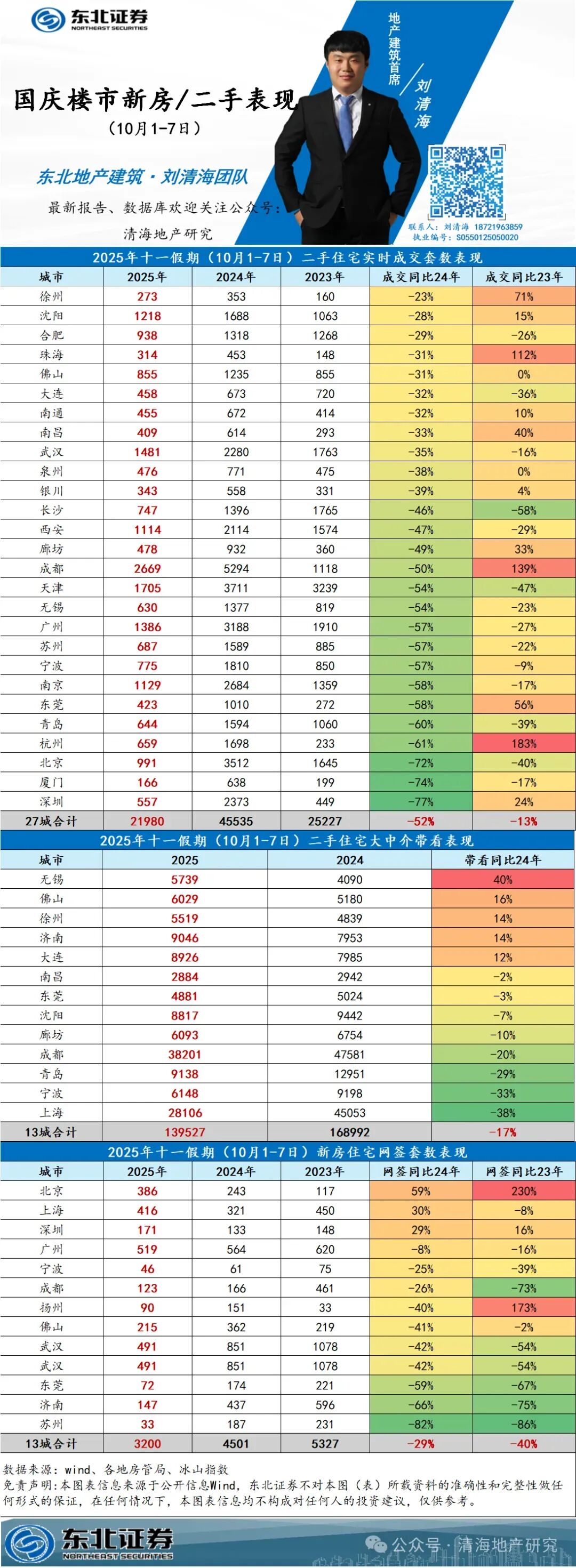 同比下滑幅度大,有2024年10月份高基础的影响,但即便和2023年相比,增长的城市也不算多。