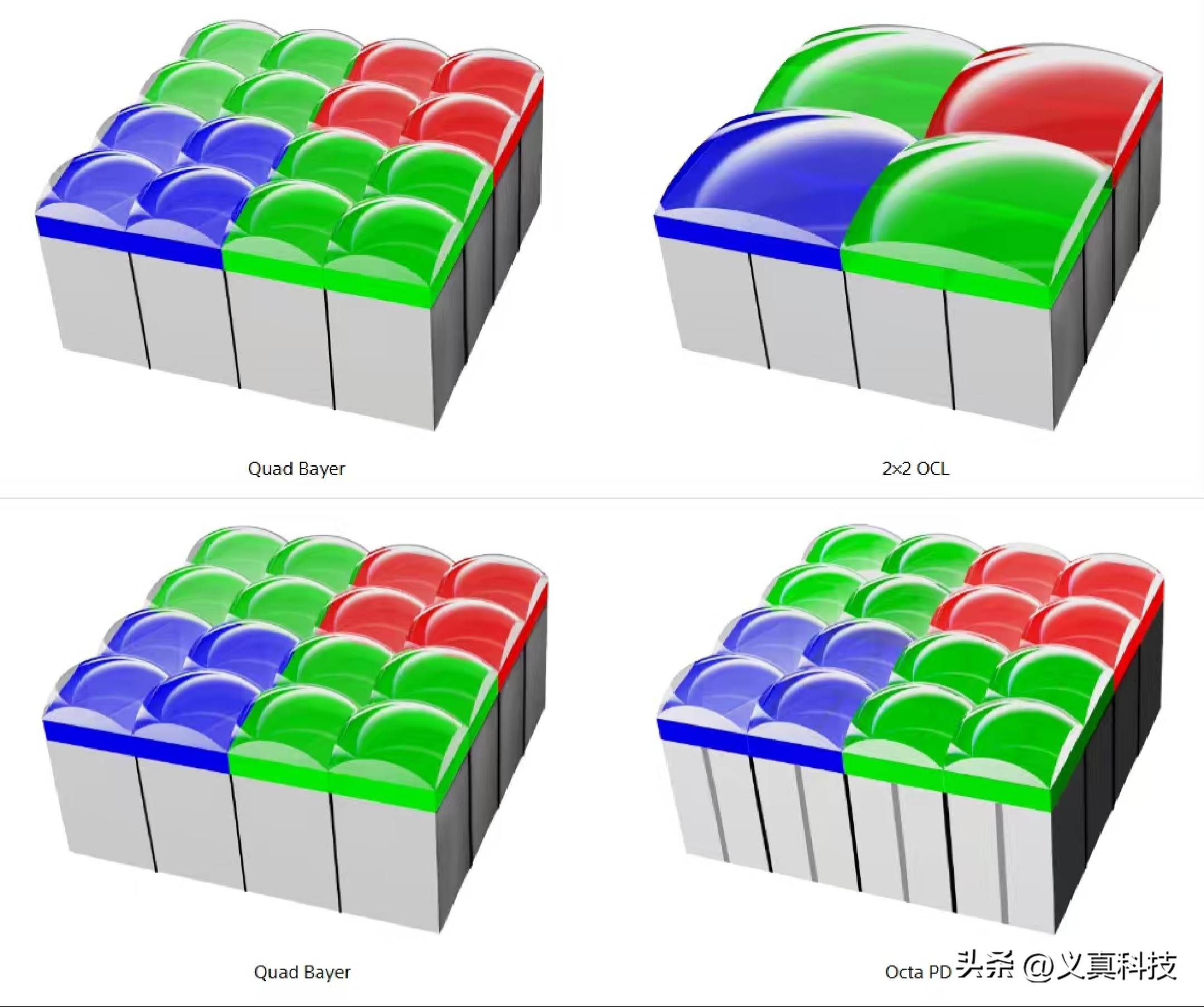 另一种则是对焦性能极致化的全像素“2×2 OCL”设计(全像素全向对焦),这种像素设计的好处是既能控制成本又能保证对焦性能。