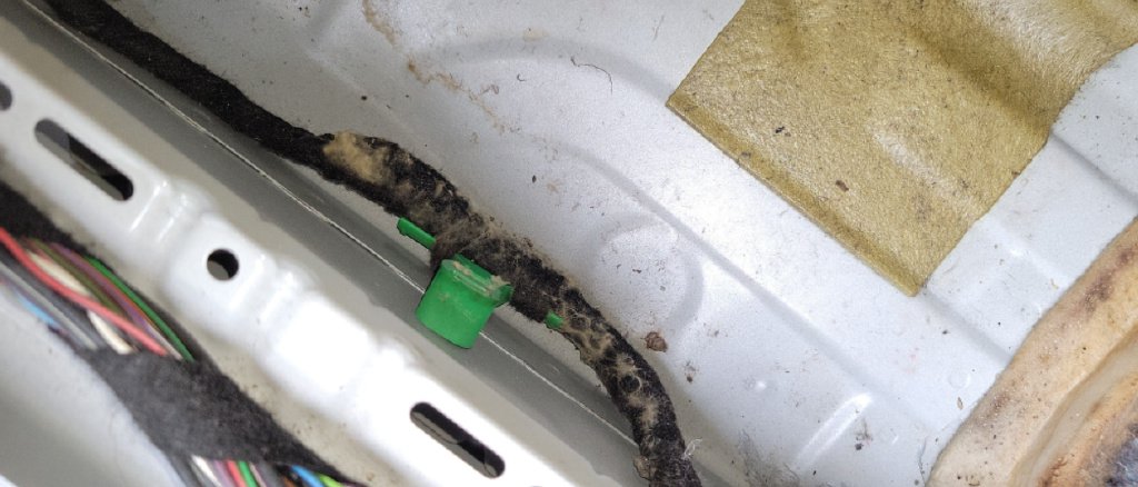 继续掀开下一层,看到线束上的黑色胶布已经明显的发霉了,并且还能看到一些水痕。