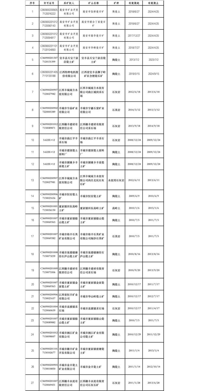 最新消息,根据《矿产资源法》、《矿产资源开采登记管理办法》和《自然资源部关于进一步完善矿产资源勘查开采登记管理的通知》等相关要求,宜春市自然资源局拟对高安市伍桥瓷石矿等27宗采矿许可证予以注销。