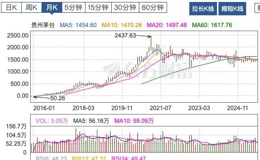 茅台的业绩有所下降,从2016年到2018年,营收和净利润增速保持在20%以,2024年净利润增速降为15.38%,2025年上半年营收和净利润增速分别为9.16%和8.89%,增速明显放缓。